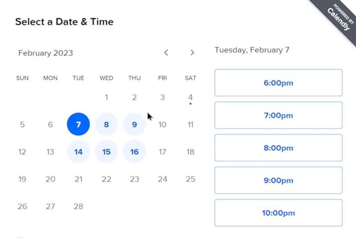 You'll be taken to a page where you can select the date and time that works for you. Once selected you'll be asked for you name, email and what English you are wanting to focus on.
